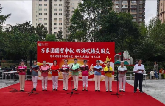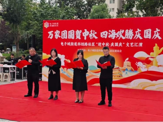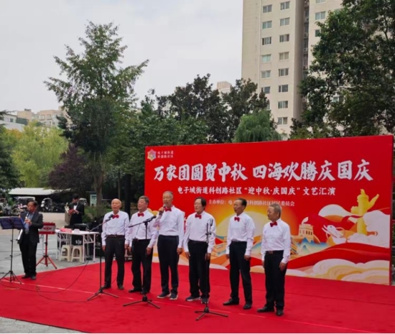 金风送爽,丹桂飘香,当中秋明月与国庆红旗交相辉映,科创路社区处处洋溢着团圆与喜庆。2025年9月26日下午,由西安市雁塔区电子城街道科创路社区主办的双节文艺汇演在丽湾蓝岛小区广场温情上演。社区以“百千万”工作法为纽带,串联起工作人员、党员、居民、驻区单位及物业代表,用文艺之美共庆双节,让邻里温情在欢乐中不断升温。