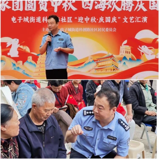 还有社区全体工作人员向大家呈现的情景剧社区之歌《我们的共同家园》,向大家展现了社区工作的方方面面,每个人都全身心融入角色,只为在舞台上唱响社区和谐旋律,展现共同家园的温暖。在此之后社区片区民警还向居民们讲述了反诈的系列知识,特别叮嘱现场的老年人们要谨防线上线下层出不穷的诈骗手段。