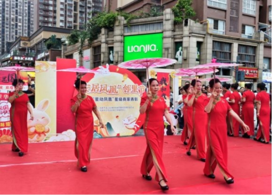 国庆、中秋双节将至,2025年9月27日晚,成都市凤凰社区于合能珍宝琥珀商业中心广场开展了“安居凤凰”邻里节暨“星动凤凰”星级商家表彰活动。本次活动由凤凰社区居委会主办、成都市众方达社会工作服务中心承办,不仅为社区居民奉献了一场集文化展示、互动体验与便民服务于一体的节日盛会,还特别通过商家表彰织密社区纽带,促进商业环境与邻里关系共生共荣。