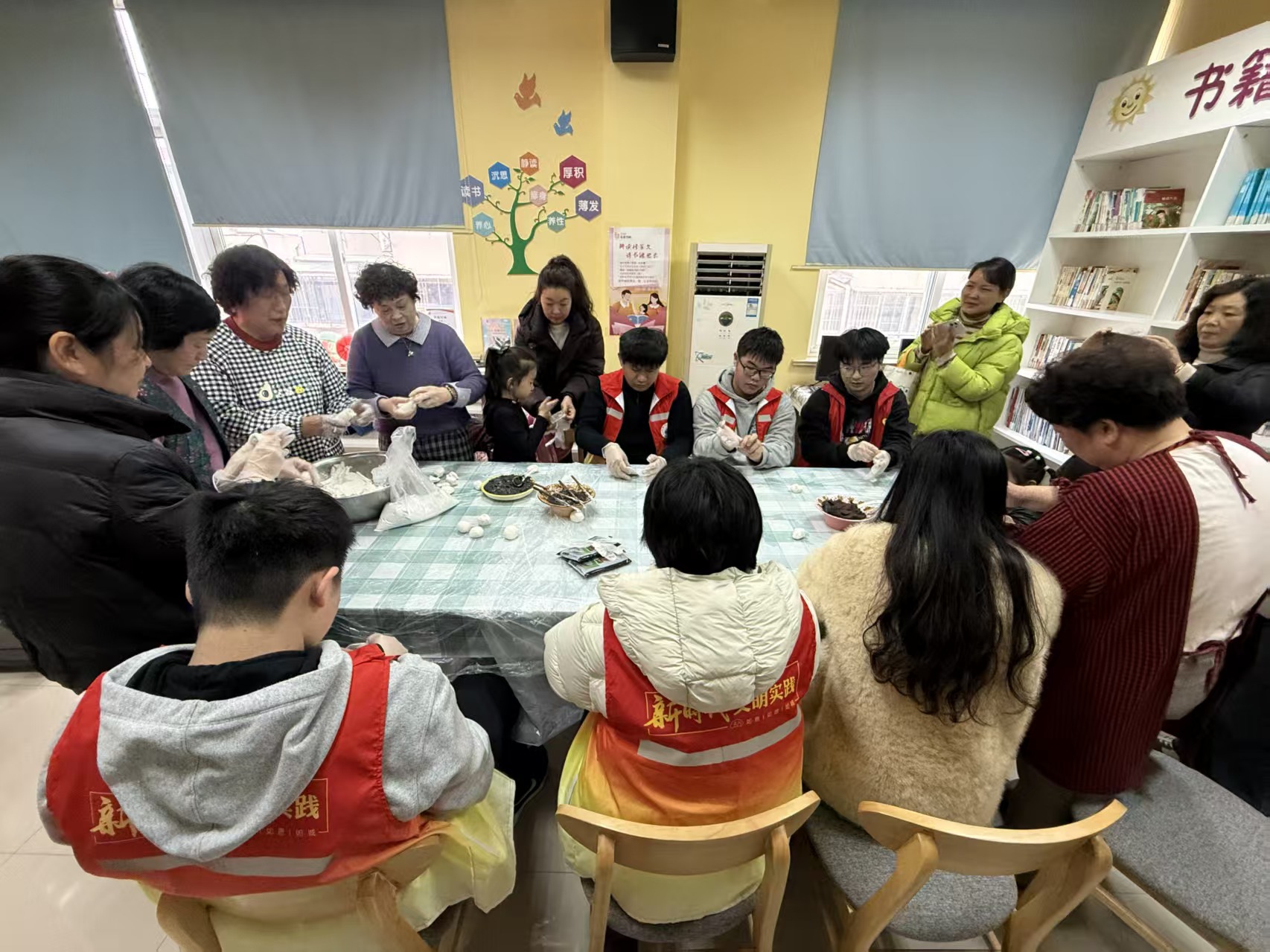活动现场暖意融融,退役军人志愿者们主动担当,与居民们围坐一桌包汤圆。他们动作娴熟,耐心指导青少年和邻里新手,揉面、包馅、搓圆,欢声笑语中,一个个圆润饱满的汤圆摆满托盘。大家边包边聊,从军旅生涯谈到社区变迁,军民情谊在互动中愈发深厚。