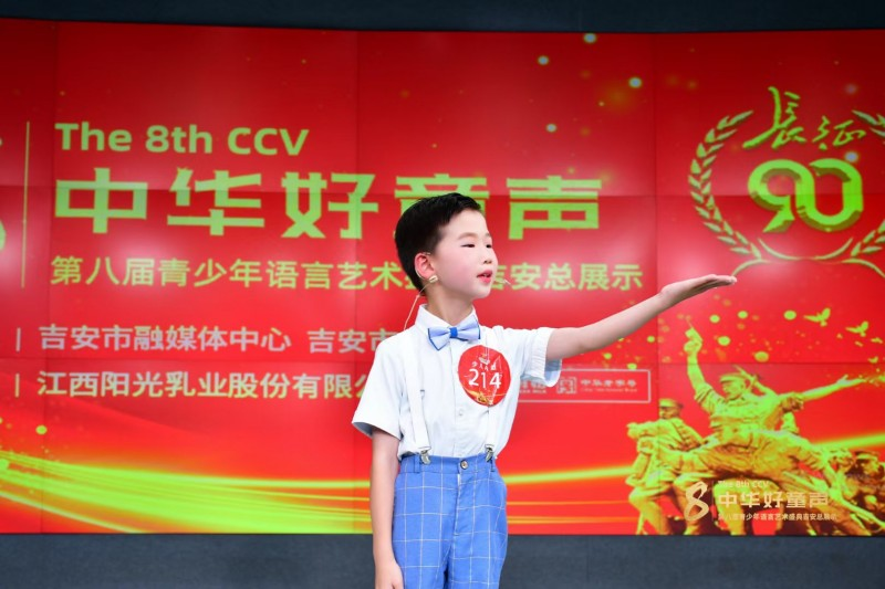 自此,他从校园讲到了更大的舞台。在“金牌小主播全国青少年语言艺术电视大赛”中斩获小学组金奖;在2024年第八届“中华好童声”青少年语言艺术盛典中,从吉安到江西,一路过关斩将,均将个人金奖收入囊中;在“声动永新·书香秀水”少儿语言大赛决赛中同样拔得头筹。每一次登台,都是一次淬炼。他明白了,好的讲述不止于声音洪亮、口齿清晰,更在于情真意切,在于用今天的语言,让昨天的精神叩击今天的心灵。