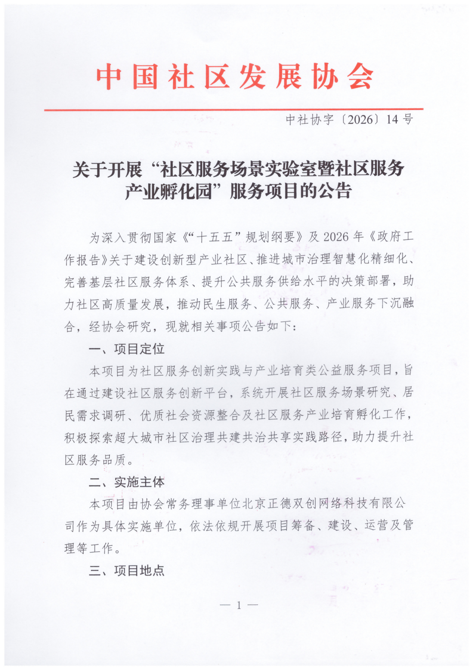 关于开展”社区服务场景实验室暨社区服务产业孵化园“服务项目的公告